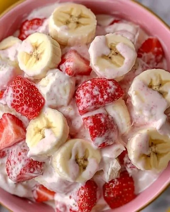 Salade crémeuse de fraises et de bananes
