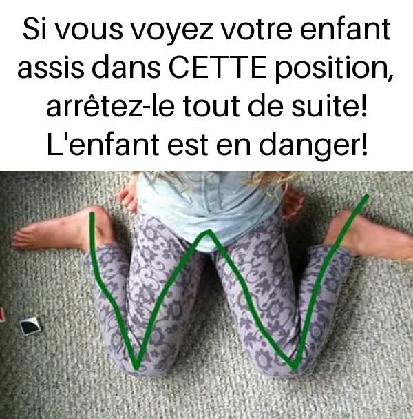 Cependant, cette position entraîne des problèmes que la plupart des gens ne comprennent pas. De plus, s’asseoir comme ça peut créer une rotation de la hanche intérieure et entraîner une prédisposition à de graves problèmes orthopédiques! Qui plus est, cette position conduit également à la déformation des genoux et des pieds, ainsi qu’à un mauvais développement des muscles internes. Ce mauvais développement musculaire entraîne un manque de coordination du corps. En fait, tous les orthopédistes professionnels vous avertissent de ne pas laisser vos enfants s’asseoir comme ça.